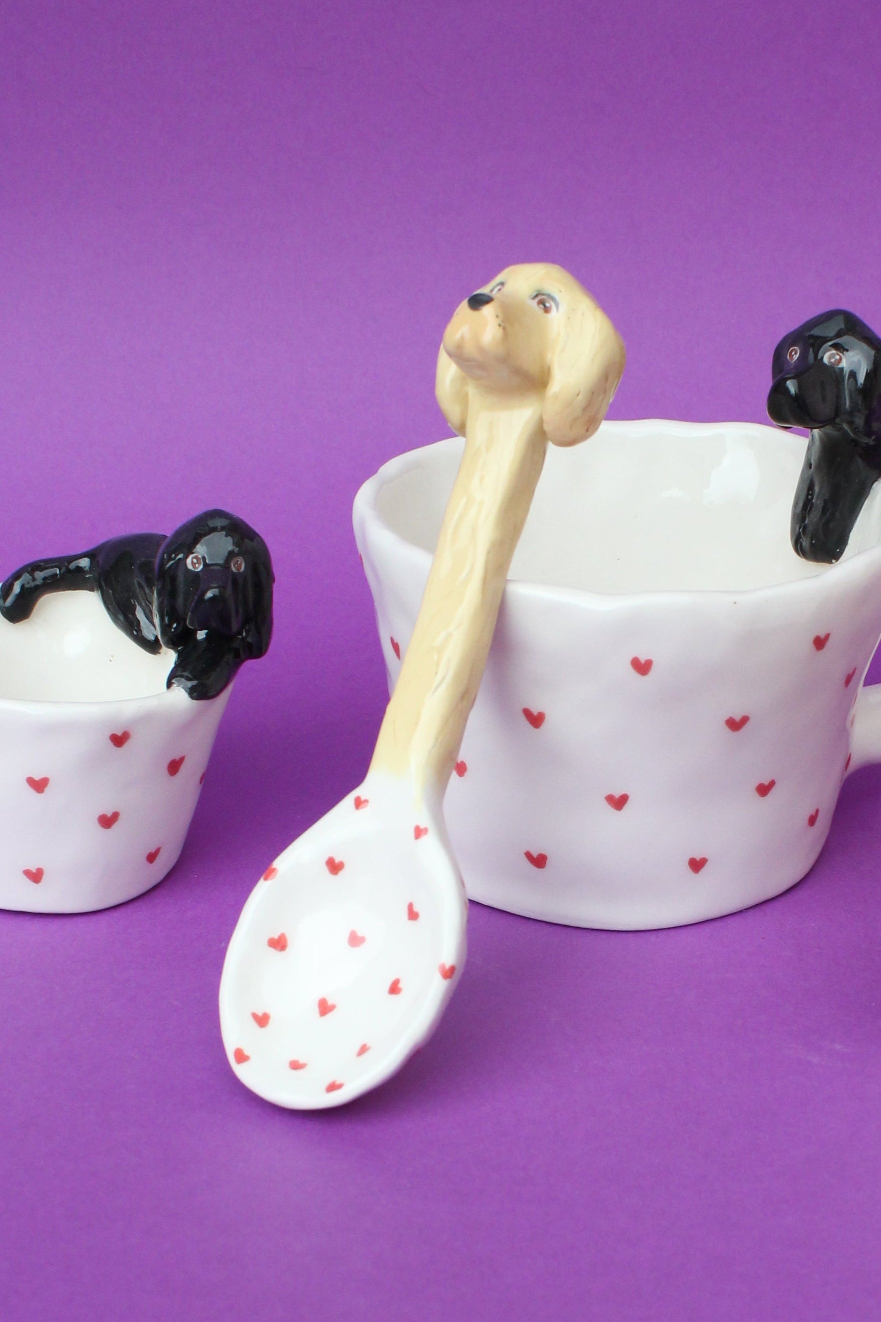 Cucchiaio con testa di animale personalizzabile, completamente realizzato a mano dalla modellazione alla pittura.