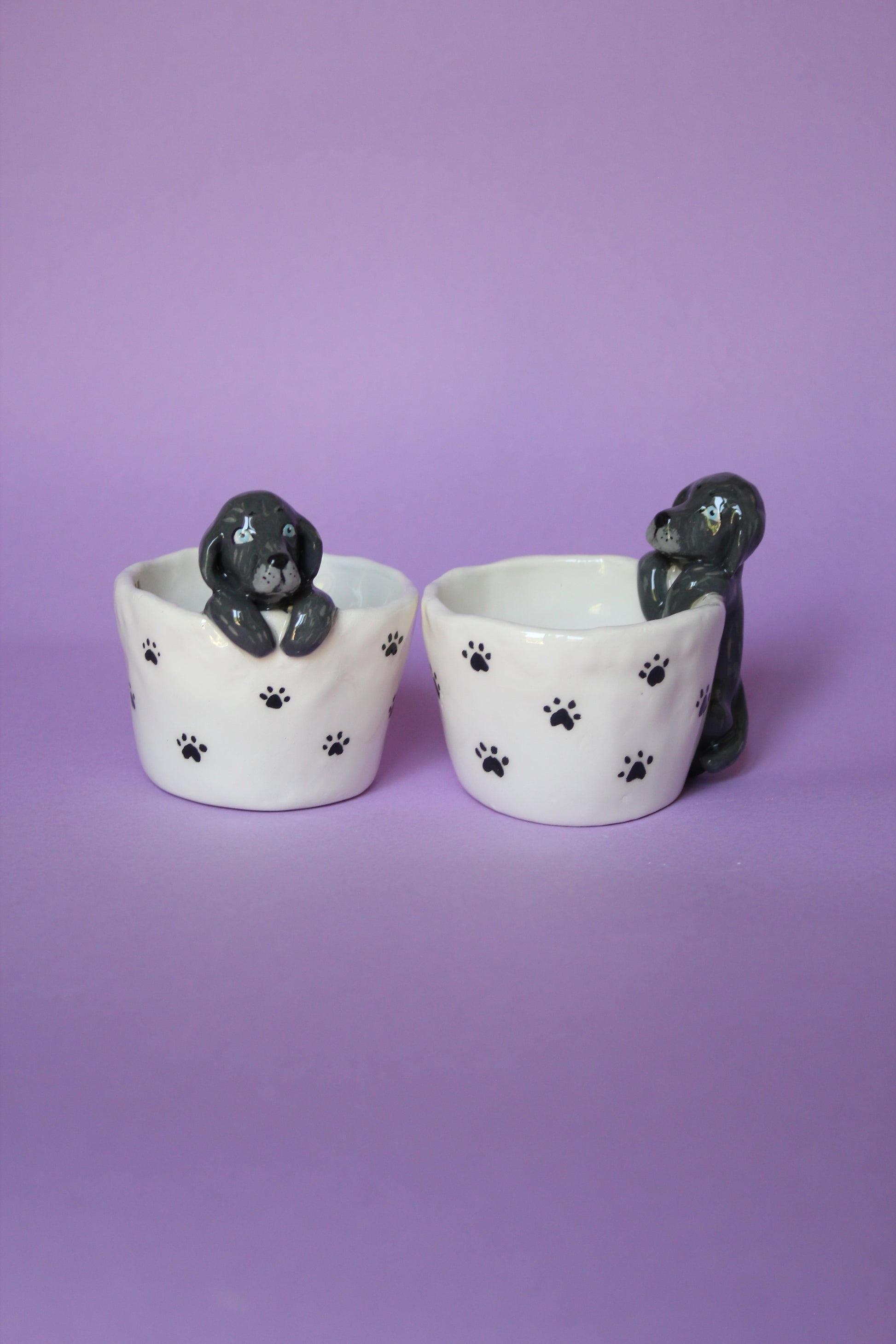 Set di tazzine da caffè con animali personalizzabili, completamente realizzate a mano dalla modellazione alla pittura.